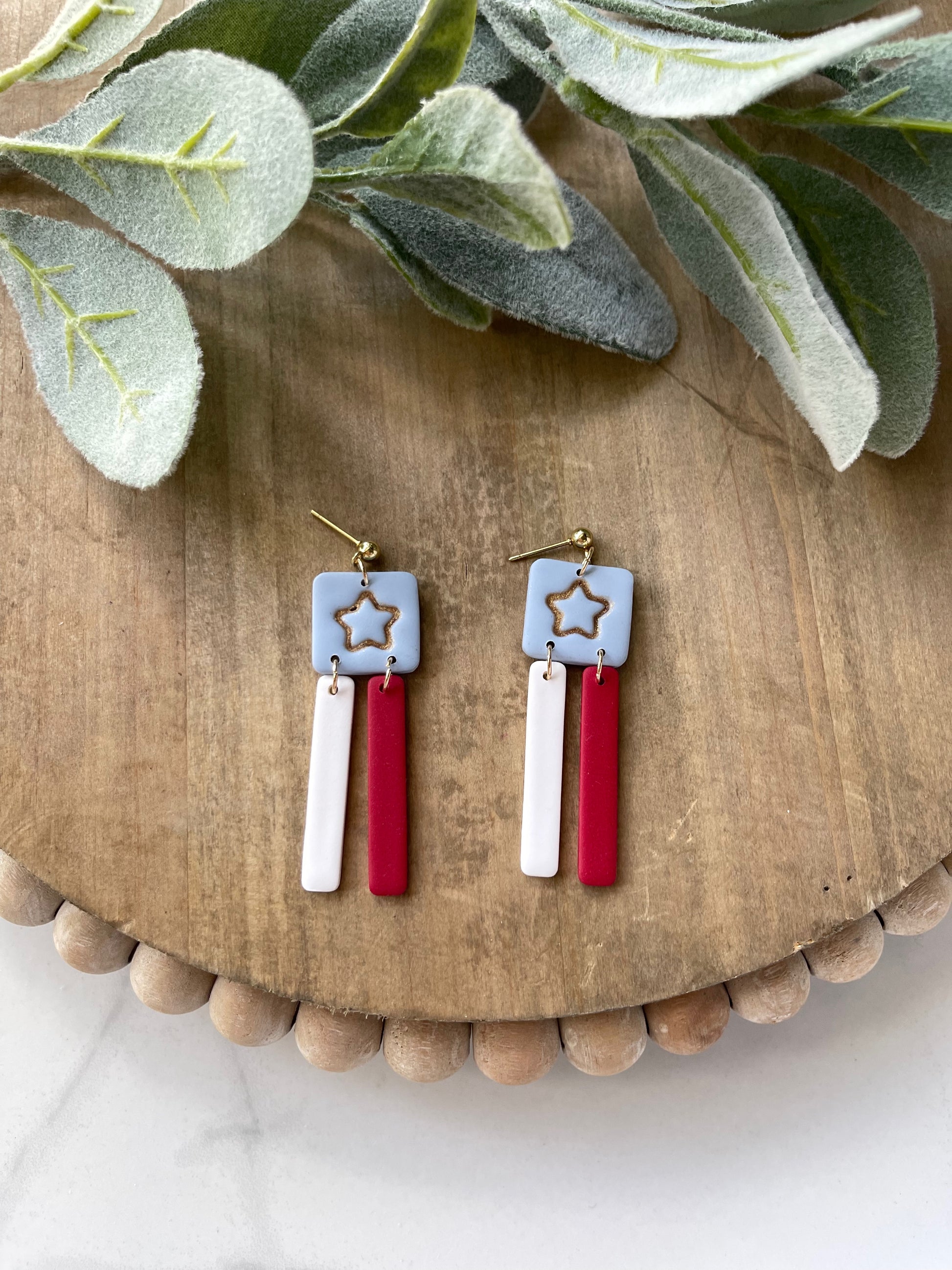 Handmade earrings made from polymer clay. Post is gold plated stainless steel.